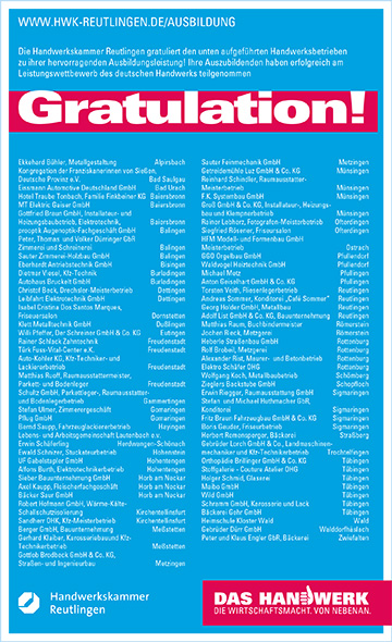 Wir gratulieren den Ausbildungsbetrieben zu Ihrem Ausbildungserfolg.