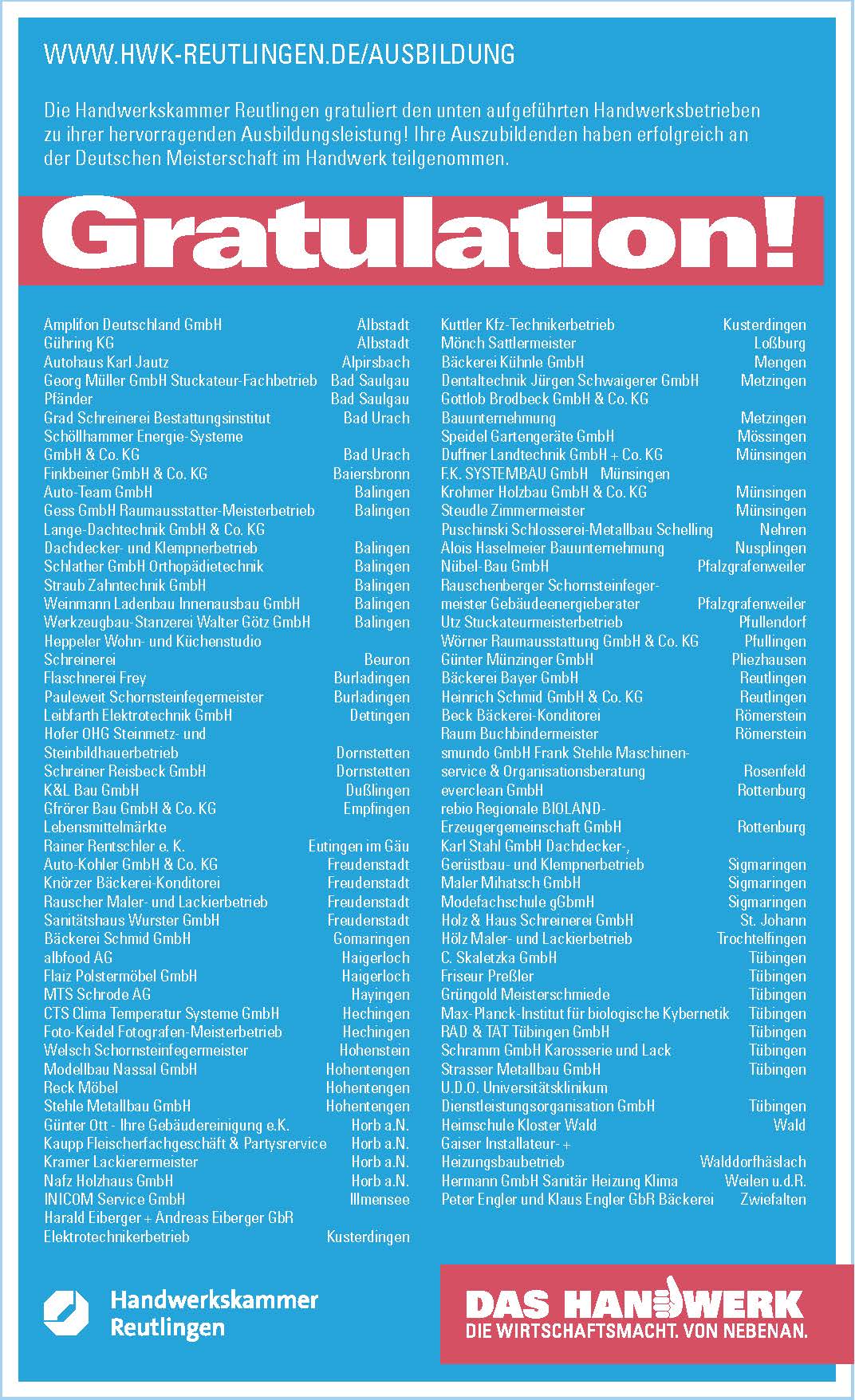 Wir gratulieren den Ausbildungsbetrieben zu Ihrem Ausbildungserfolg.
