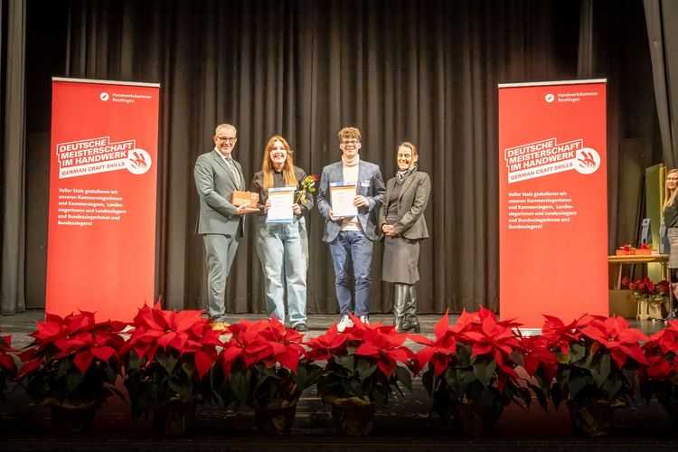 Gleich vier Nachwuchskräfte aus der Region haben sich bei der Deutschen Meisterschaft im Handwerk an die Spitze gearbeitet und den Bundessieg in ihrem Gewerk geholt. Als Bundessiegerinnen und Bundessieger wurden ausgezeichnet die Buchbinderin Christiane Albrecht aus Göttingen, die Holzbildhauerin Annika Hader aus Bingen, die Verfahrenstechnologin in der Mühlen- und Getreidewirtschaft Mona Maier aus Rottenburg und der Wärme-, Kälte- und Schallschutzisolierer Moritz Münzinger aus Pliezhausen.