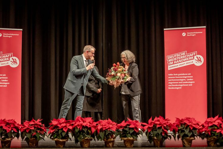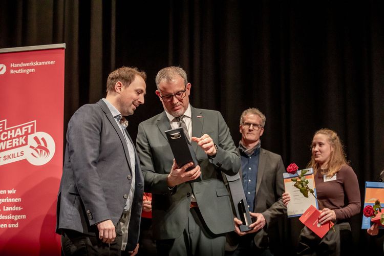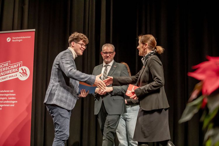 Die Friseurin Noemi Bühler aus Ammerbuch, die Maßschneiderinn Julia Gutsche aus Albstadt und der Präzisionswerkzeugmachaniker Tim Nico Ulmer aus Burladingen sicherten sich den zweiten Platz. Auf Rang drei landete die Zahntechnikerin Hanna Debora Maisch aus Neuffen. Im Gestaltungswettbewerb „Die gute Form – Handwerker gestalten“ erreichten zudem der Parkettleger Cedrik Rempfer aus Mössingen und die Sattlerin Sofia Mey aus Oberndorf am Neckar den ersten Platz. Zweite Plätze gingen an die Buchbinderin Christiane Albrecht aus Göttingen und die Holzbildhauerin Annika Hader., der dritte Preis ging wiederum an die Maßschneiderin Julia Gutsche aus Albstadt. Dieses starke Abschneiden zeigt eindrucksvoll: Der handwerkliche Nachwuchs aus dem Kammerbezirk gehört bundesweit zur Spitze.
