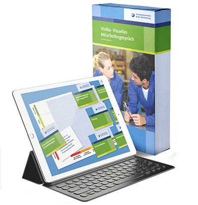 Das Werkzeug „Visuelle Mitarbeitergespräch“ hilft, Mitarbeitergespräche konstruktiv und auf Augenhöhe zu gestalten. Hierbei steht der Mitarbeitende im Fokus und gibt Feedback.