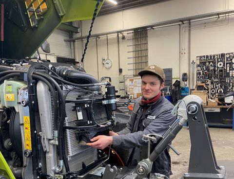 Benjamin Renner wollte schon immer mit Technik arbeiten, die etwas bewirkt: „Die Wartung und Reparatur von Traktoren oder Baggern ist spannend, weil ich sehe, wie wichtig meine Arbeit für die Land- und Forstwirt-schaft und die Bauwirtschaft ist.“ Zu den Lieblingstätigkeiten des jungen Mannes gehört die Reparatur von Maschinen für Gülletechnik. Auch Umbauten von Traktoren und die Anfertigung von Sonderteilen findet er spannend. Weniger begeistert ist er von der Reparatur von Rasenrobotern – aber auch hier zeigt er Professionalität.