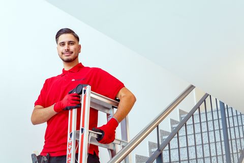 Sauber machen – was für viele Gleichaltrige einen Graus darstellt, nimmt Özkan Dalkilic als spannende Herausforderung an. Schließlich gebe es da einen feinen Unterschied, der den Laien vom Profi unterscheidet, betont der junge Mann. „Wir arbeiten mit System und Verstand. Das geht nicht ohne die richtigen Techniken und das Wissen, welche Reinigungsmittel im jeweiligen Fall geeignet sind.“ In den vergangenen Wochen war Dalkilic bei Grundreinigungen in Schulen und Kindergärten dabei, reinigte Fenster, Böden und Fliesen, arbeitete auf Baustellen und in Privathäusern. Kein Tag sei wie der andere. „Reinigen, das bedeutet ganz verschiedene Tätigkeiten in unterschiedlichen Objekten. Diese Abwechslung gefällt mir.“ Der 19-Jährige wird bei der Kocak GmbH & Co. KG in Reutlingen als Gebäudereiniger im dritten Lehrjahr ausgebildet.