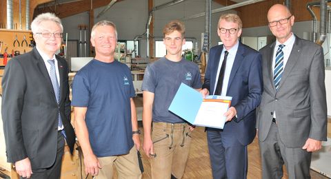 Harald Herrmann, Präsident der Handwerkskammer Reutlingen, lobte bei der Übergabe der Ehrenurkunde und einem Geldpräsent die Leistung des Auszubildenden ausdrücklich. Er erinnerte aber auch daran, dass natürlich auch der Ausbildungsbetrieb ein großes Interesse an einer guten Ausbildung habe – schließlich mache sich der Fachkräftemangel gerade auch im Handwerk immer mehr bemerkbar.