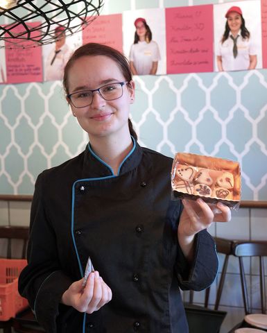 Hanna Schiebel präsentiert Teegebäck, eine der süßen Köstlichkeiten, die die Auszubildenden im Rahmen des zweiwöchigen Projekts "Azubi-Filiale" in Eigenregie herstellen. Fotos: Handwerkskammer