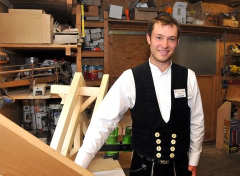 Mit Holz beschäftigt sich Hannes Schmid seit Kindertagen. Schon als kleiner Junge war er in der Bastelwerkstatt des Großvaters gerne und fleißig zu Gange, wenn Regale, Holzboote und Vogelhäuser entstanden. Als einige Jahre später die Berufswahl anstand, spielte ein Onkel, selbst gelernter Zimmerer, eine nicht unerhebliche Rolle. Konstruieren, bauen und die Arbeit mit dem Werkstoff Holz, das passte für Schmid gut zusammen.