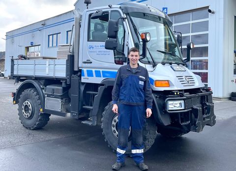 Bevor er aber seine Ausbildung bei der Irßlinger Nutzfahrzeug-Service GmbH im Jahr 2019 anfing, absolvierte der Hohentengener nach seiner Mittleren Reife zwei Praktika im Bereich Land- und Baumaschinen. So gut gerüstet fiel und fällt ihm seine abwechslungsreiche Arbeit, sowohl in der Werkstatt als auch im Außen- und Pannendienst, nicht schwer. Er freue sich jeden Morgen regelrecht auf seine Arbeit, so der 19-Jährige. Obwohl er täglich eine Anfahrt von 25 Kilometern zu seiner Ausbildungsstelle hat, ist er morgens einer der ersten, der den Betrieb mit einen fröhlichen „Guten Morgen“ betritt.