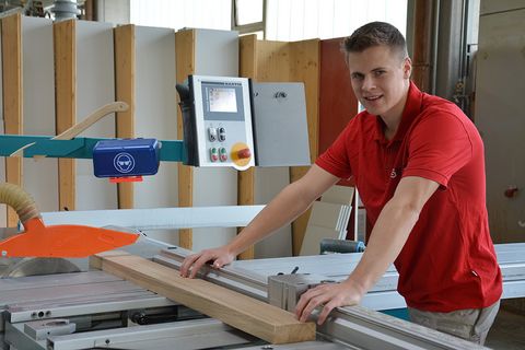 So sehen das auch seine beiden fachlichen Ausbilder beim Fertighaushersteller, die Tischlermeister Gerhard Schwörer und Jan Hiller-Randecker. „Manuel ist sehr motiviert. Er will perfekte Ergebnisse abliefern und ist immer zu 150 Prozent bei der Sache“, lobt Schwörer. Und auch im Team wisse der Auszubildende zu überzeugen, fügt Hiller-Randecker hinzu. „Er ist aufmerksam und umsichtig, hat ein offenes Ohr für andere und hilft seinen Kollegen, wenn es mal klemmt.“