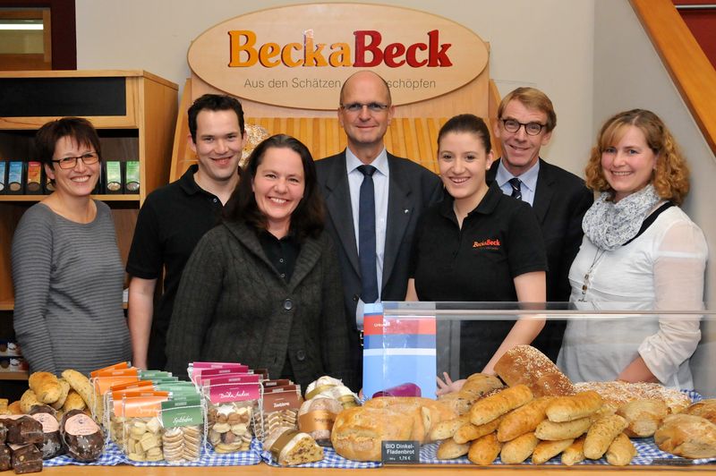 „Sie ist außerdem mit Eifer bei allen betrieblichen Fortbildungen dabei“, berichtet Beck weiter: Seien es Kräuterwanderungen, der Besuch von Saft- und Nudelproduzenten oder auch zusätzliche innerbetriebliche Backkurse. Mehr noch: neben dem Besuch eines Knigge-Kurses habe sie sich in der Behinderteneinrichtung „Bioland Hofladen Bleiche“ sozial engagiert.