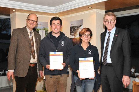 Robert Henger und Gabi Schweizer, Geschäftsführerin der Hellstern & Kessler GmbH, nahmen die Glückwünsche von Präsident Harald Herrmann und Hauptgeschäftsführer Dr. Joachim Eisert entgegen.