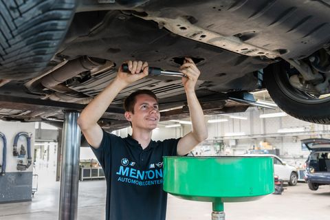 Auch der Ölwechsel gehört zu Sebastians Aufgaben während der Ausbildung. Foto: Menton Automobilcenter