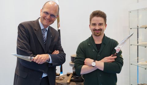 Für den ersten Schnitt geben Karolj und Janosch Vecernjes neuen Kunden inzwischen gleich ein Pflaster als Visitenkarte mit – wer nämlich eines der vollständig handgefertigten Messer zum ersten Mal auf...mehr lesen