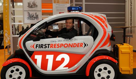 Die ersten Interessenten an dem von der Mössinger Firma Gas-Power umgebauten Renault Twizy auf der Internationalen Handwerksmesse (IHM) in München kamen von der Messe-Feuerwehr.mehr lesen