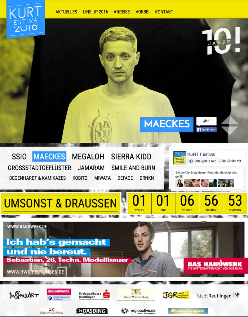 Anlässlich dieses Jubiläums verlost das KuRT-Festival zusammen mit der Handwerkskammer Reutlingen ein Meet-&-Greet mit Maeckes am 8. Juli 2016 (von 20:00 Uhr bis ca. 20:30 Uhr).