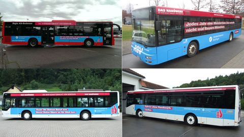 So fahren in der Zwischenzeit vier Busse mit Motiven der Imagekampagne durch die Landkreise des Bezirks der Handwerkskammer Reutlingen. Diese Maßnahme soll aber auch die zweite Runde der Imagekampagne des deutschen Handwerks unterstützen.