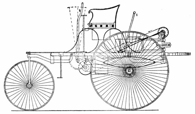 Der Motorwagen Nr. 1 von Carl Benz, wie er in der Patentschrift vom 29. Januar 1886 abgebildet ist. Foto: Wikimedia