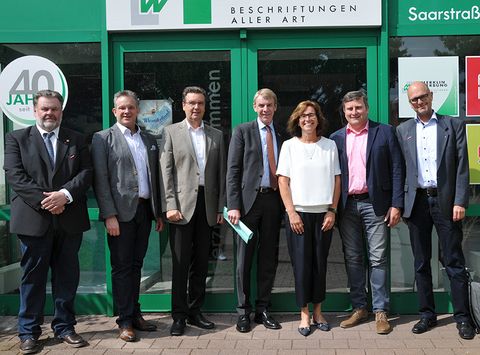 Erste Station von Herrmann und Eisert, die von Kreishandwerksmeister Alexander Wälde und Siegfried Dreger, Geschäftsführer der Kreishandwerkerschaft Freudenstadt, begleitet wurden, war die Merklin Werbung GmbH in Baiersbronn. Der Betrieb produziert klassische Werbetechnik in unterschiedlichen Materialien und nahezu allen Formaten. Banner, Informationstafeln und komplette Messeauftritte gehören dazu wie Fahrzeugbeschriftungen und der Textildruck. „Wir wollen den Markt komplett bedienen“, betont Geschäftsführer Axel Kneißler, „schon allein, um nicht in Abhängigkeiten zu geraten.“