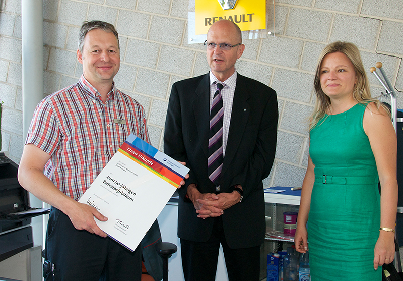 Kfz-Mechanikermeister Friedrich Widmann gründete das Unternehmen am 1. Juni 1964 als Renault-Vertragshändler. Als fortschrittliches Modell galt damals der Kleinwagen R4, der als eines der ersten Großserienfahrzeuge über eine weit öffnende Heckklappe verfügte. Die heutigen Innovationen im Fahrzeugbau sehen anders aus. „Das Thema Elektromobilität gewinnt an Bedeutung“, sagt Inhaber und Geschäftsführer Frank Widmann. Pünktlich zum Firmenjubiläum steht erstmals ein elektrisch betriebener Lastkraftwagen in seiner Werkstatt.