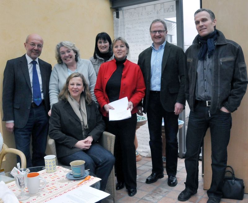 Wollen Schüler an Handwerksberufe heranführen: Hans Batsching, Gabi Bachschuster, Ute Schweizer (sitzend), Michaela Lundt, Handwerkskammer Reutlingen, Carola Rieger, Johannes Merkh und Jochen Osswald, Freie Evangelische Schule.