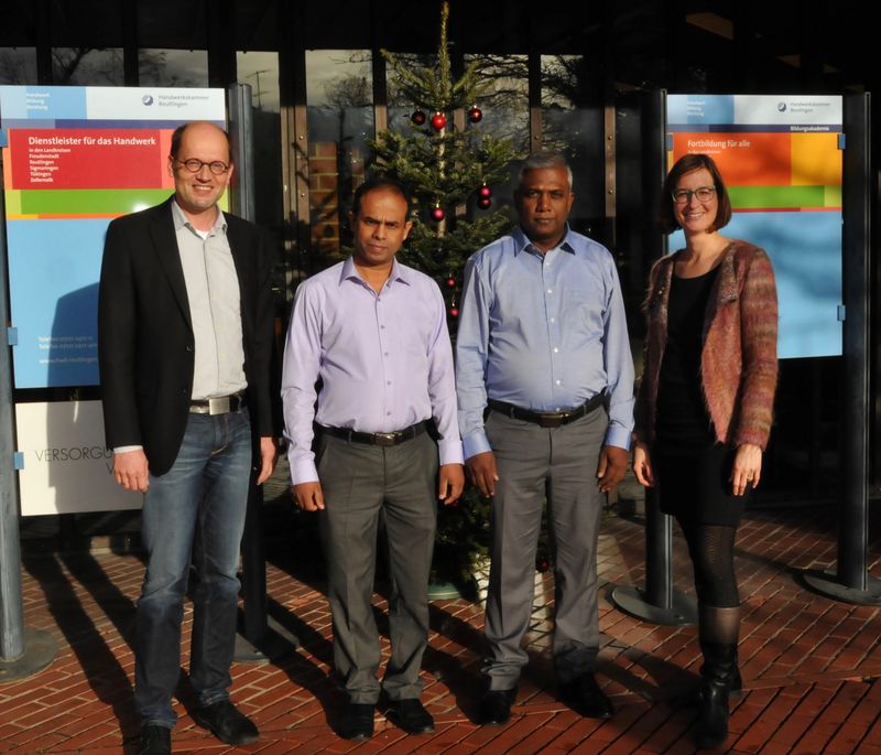 Die beiden Lehrer des Ceylon-German Technical Training Institute (CGTTI) in Moratuwa/Colombo auf der Tropeninsel Sri Lanka nutzten ihren partnerschaftlichen Besuch bei der Gewerbeschule in Metzingen, um auch der Handwerkskammer Reutingen einen kurzen Besuch abzustatten.