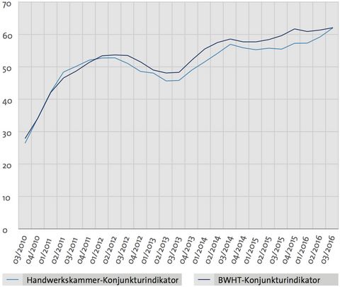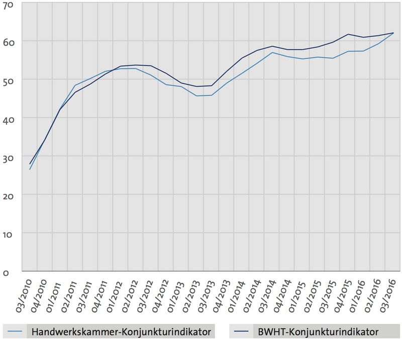 Siebzig Prozent der Handwerksunternehmen in den Landkreisen Freudenstadt, Reutlingen, Sigmaringen, Tübingen und Zollernalb bewerten die Geschäftslage im dritten Quartal 2016 als gut (Freudenstadt: 62 Prozent; Reutlingen: 73 Prozent; Sigmaringen: 78 Prozent; Tübingen: 67 Prozent; Zollernalb: 70 Prozent).