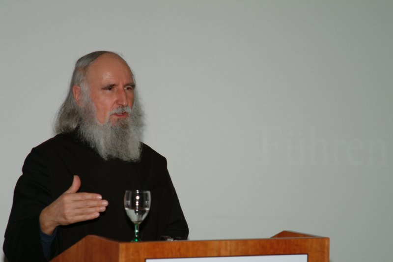Die Eröffnungsveranstaltung begann mit einem Vortrag von Pater Dr. Anselm Grün, der als wirtschaftlicher Leiter (Cellerar) der Abtei Münsterschwarzach für rund 300 Mitarbeiter in über 20 Betrieben verantwortlich ist.