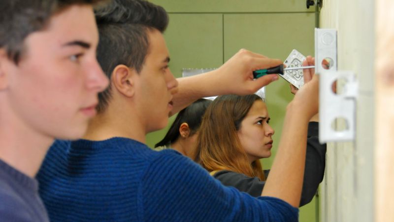 Die Schülerinnen und Schüler führen charakteristische Tätigkeiten von Schreinern, Friseuren, Malern- und Lackierern, Feinwerkmechanikern, Metallbauern, Elektronikern, Fahrzeuglackierern, Anlagenmechanikern Sanitär-, Heizungs- und Klimatechnik, Kfz-Mechatronikern, Raumausstattern und Bürokaufleuten durch.