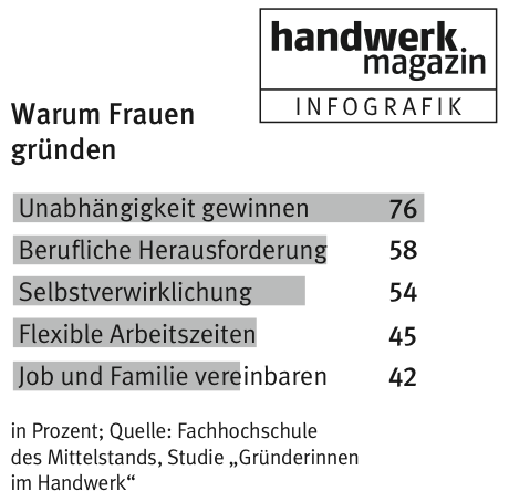 Immer mehr Frauen haben Freude daran, in einem Unternehmen Verantwortung zu übernehmen, heißt es in einer aktuellen Meldung des ‚handwerk magazin’ unter Bezugnahme auf aktuelle Zahlen und Studien.
