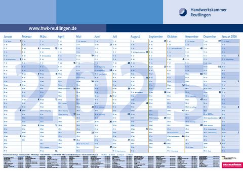 Viele Mitgliedsbetriebe schätzen den praktischen Wandkalender der Handwerkskammer. Die Ausgabe 2025 liegt wie gewohnt der Deutschen Handwerks Zeitung bei. Eine Version für Selbstdrucker können Sie bereits heute herunterladen.