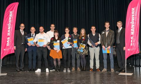 „Das ist die Bilanz eines Ausbildungsjahrgangs, den unsere Betriebe engagiert und motiviert hervorgebracht haben. Darauf können sie zu Recht stolz sein“, lobte Herrmann. Geehrt wurden neben den Kammer-, Landes- und Bundessiegerinnen und -siegern auch zwei Preisträgerinnen des Gestaltungswettbewerbs „Die Gute Form – Handwerker gestalten“.
