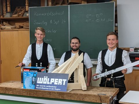 Silber, Gold, Bronze: Die drei ausgezeichneten Zimmerergesellen Moritz Klemm, Johannes Blatter und Lars Beutel (v.l.n.r.).