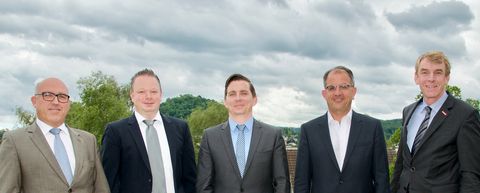 Der stellvertretende Hauptgeschäftsführer Rainer Neth, Alexander Schlick (Glaserhandwerk; Bad Saulgau), Maik Berger (Kraftfahrzeugtechnikerhandwerk; Sonnenbühl), Gerd-Rüdiger Siebert (Zimmererhandwerk; Tübingen) und Präsident Harald Herrmann.