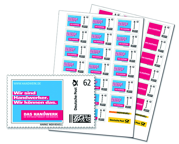 Die Handwerksbriefmarke ist eine Kooperation des Handwerks mit der Deutschen Post im Rahmen der Imagekampagne. Weitere Werbemittel der Imagekampagne – vom Aufkleber, über Plakate bis zu Umschlägen – können ebenfalls über den Werbemittelshop bezogen werden.