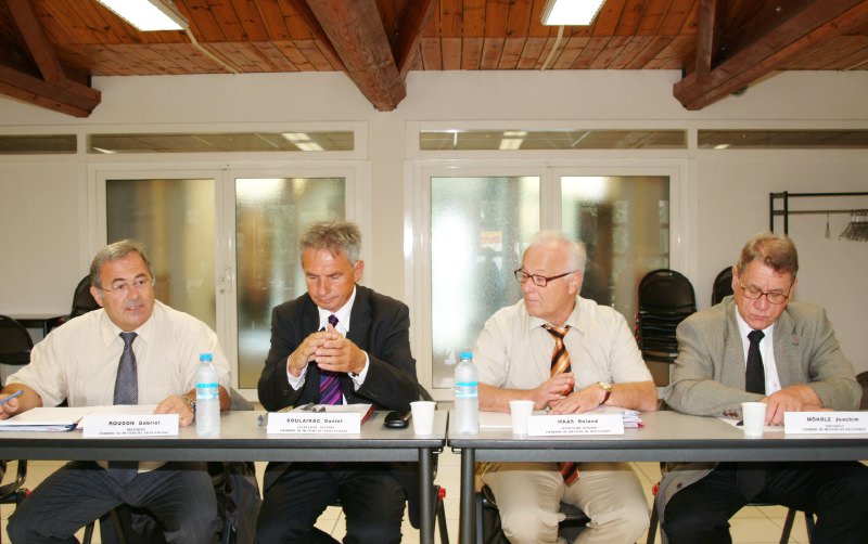 Gabriel Roudon, Präsident der Handwerkskammer St. Etienne, Daniel Soulairac, Hauptgeschäftsführer der Handwerkskammer St. Etienne, Roland Haaß, Hauptgeschäftsführer der Handwerkskammer Reutlingen und Präsident Joachim Möhrle (v. l. n. r.).