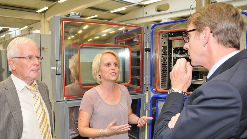 Das 1996 gegründete Unternehmen stellt Geräte und Anlagen zur Umweltsimulation her. In so genannten Prüfkammern testen Industrie und Forschungsinstitute, wie sich Materialen und Produkte unter verschiedenen Bedingungen, wie etwa Wärme, Kälte, Feuchte und Druck, verhalten. Um solche „Stresstests“ für Lacke, Kunststoffe oder Textilien verlässlich und wiederholbar durchführen zu können, werde jede Anlage nach spezifischen Kundenanforderungen aufgebaut, erklärt Nathalie Maute. Die studierte Wirtschaftsingenieurin, zuständig für Vertrieb und Service, leitet seit 2015 zusammen mit Rainer Modes und Philipp Jehs das Unternehmen.