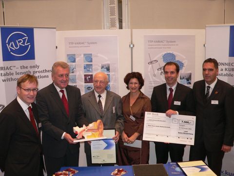 Die Heinz Kurz GmbH Medizintechnik erhält den Dr.-Rudolf-Eberle-Preis-2009 für ihr innovatives Mittelohrprothesensystem TTP-VARIAC®: Johannes Schmalzl (Regierungspräsident Stuttgart), Wirtschaftsminister Ernst Pfister, Firmengründer Heinz Kurz, Geschäftsführerin Traute Kurz-Butzki, Technischer Leiter Uwe Steinhardt und Thomas Hölsch (Bürgermeister Dusslingen).