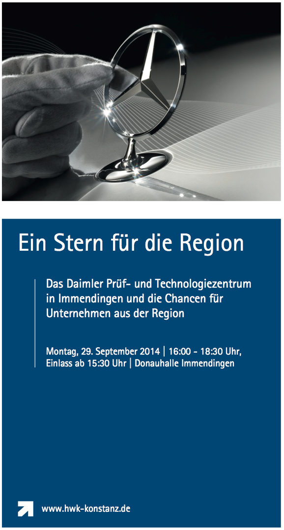 Die Veranstaltung findet am Montag, dem 29. September, 16:00 bis 18:30 Uhr, in der Donauhalle Immendingen statt. Veranstalter sind neben der Daimler AG die IHK Schwarzwald-Baar-Heuberg, die Handwerkskammer Konstanz, das Technologienetzwerk TechnologyMountains und die Gemeinde Immendingen.