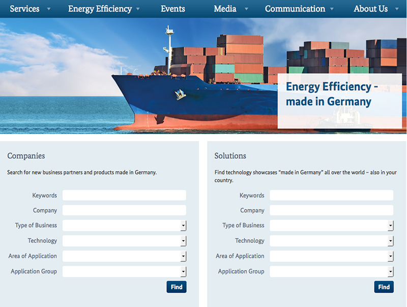 An Betriebe, die Leistungen und Produkte aus dem Bereich Energieeffizienz im Ausland anbieten wollen, richtet sich die Online-Datenbank „Energy Efficiency – made in Germany“.