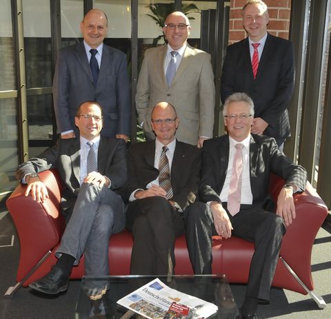 Wilhelm Schreyeck, Vorsitzender der Geschäftsführung der Arbeitsagentur Reutlingen, Rainer Neth, stellvertretender Hauptgeschäftsführer der Handwerkskammer Reutlingen, Clemens Riegler, Leiter der Bildungsakademien der Handwerkskammer Reutlingen (hintere Reihe, v.li.n.re.), Georg Link, Vorsitzender der Geschäftsführung der Arbeitsagentur Balingen, Dr. Joachim Eisert, Hauptgeschäftsführer der Handwerkskammer Reutlingen, Jürgen Schwab, Vorsitzender der Geschäftsführung der Arbeitsagentur Nagold-Pforzheim (vordere Reihe, v.li.n.re.).