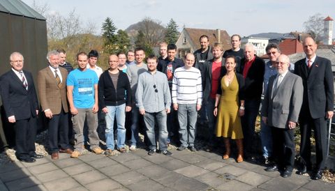 Gefragte Fachleute: Die frischgebackenen Meister zusammen mit ihren Prüfern und Vertretern der Handwerkskammer, darunter Prof. Dr. Hans Messerschmid (2. v. l.) und Kammerchef Dr. Joachim Eisert (rechts außen).