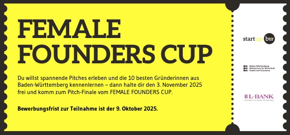 Der Wettbewerb für Gründerinnen geht in eine neue Runde. Er ist Pitch Event für Frauen in Baden-Württemberg und bietet jährlich zehn Gründerinnen und Unternehmerinnen die Chance, ihre Geschäftsidee in drei Minuten vor einer ausgewählten Fachjury und der breiten Öffentlichkeit zu präsentieren. Dieses Jahr findet das Finale Female Founders Cup 2025 am 03. November in der IHK Reutlingen statt.