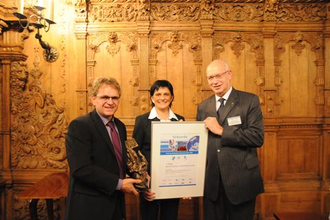Roland und Martina Arnold, hier zusammen mit Manfred Rycken, Vizepräsident des Zentralverbandes des Deutschen Handwerks (v.l.n.r.) im Rathaus zu Bremen.