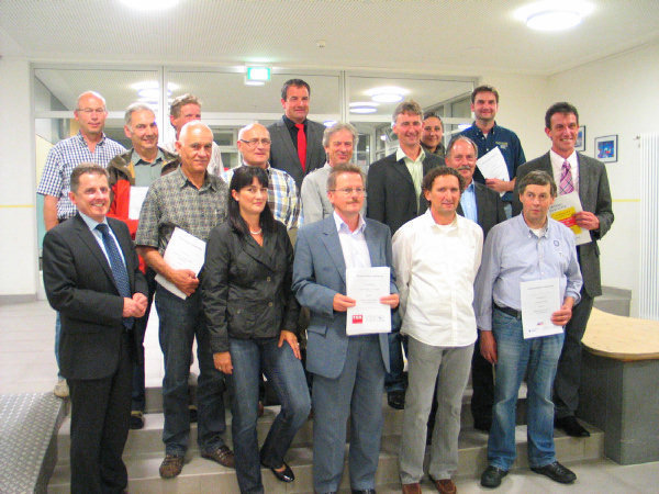 Die Verträge sind unterzeichnet. Auf dem Bild die Firmenvertreter und Lehrer. Vorne links: Bürgermeister Jochen Spieß und Michaela Lundt von der Handwerkskammer Reutlingen (Foto: Herbert Klawitter)