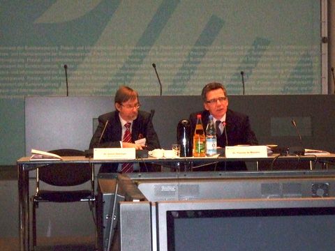 Ulrich Strempel, Referatsleiter Finanzen, Wirtschaft und Technologie (links) und Thomas de Maiziére, Chef des Bundeskanzleramtes und Minister für besondere Aufgaben.