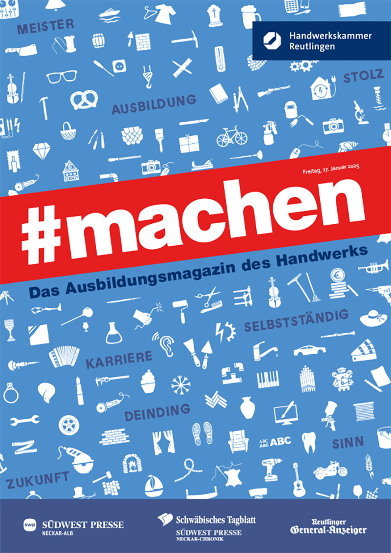 Zum Start in die Nachwuchswerbung 2025 werden wir am 17. Januar die Beilage #machen – das Ausbildungsmagazin des Handwerks in Tageszeitungen der Region veröffentlichen, in der neben spannenden Berichten rund um das Thema Ausbildung im Handwerk auch alle freien Lehrstellen abgedruckt werden, die bis spätestens 10. Dezember 2024 online gestellt worden sind. Der Abdruck ist für Sie selbstverständlich kostenfrei.