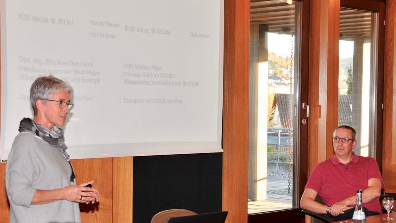 Ines Bonnaire, Abteilungsleiterin der Umweltberatung bei der Handwerkskammer Reutlingen, wies in ihrer Einführung darauf hin, dass beim Transport von Gefahrstoffen – für Arbeiten bei Kunden oder auf Baustellen – auch Regelungen des Transportrechts gelten.