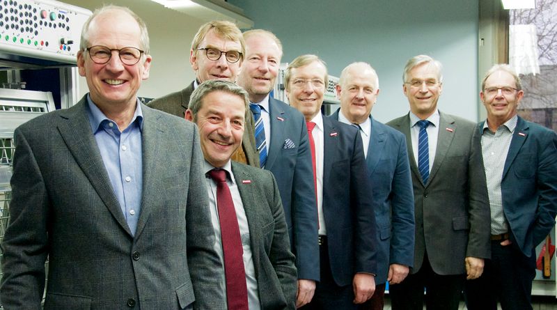 Die Handwerkskammerpräsidenten in einer Werkstatt der Bildungsakademie Tübingen: Rainer Reichhold, Johannes Ullrich, Harald Herrmann, Ulrich Bopp, Alois Jöst, Joachim Wohlfeil, Joachim Krimmer und Gotthard Reiner (v.li.n.re.).