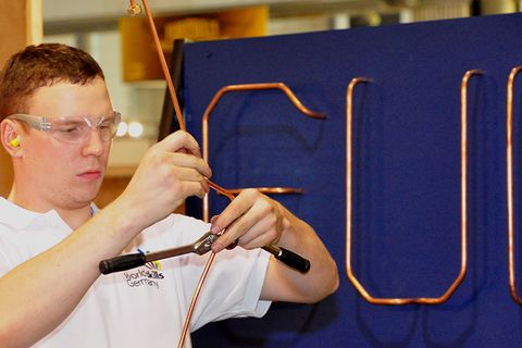 Volle Konzentration: Julian Walz beim Einzelwettbewerb der Kältetechniker bei den Europameisterschaften in Lille. Foto: WorldSkills Germany/Jörg Wehrmann
