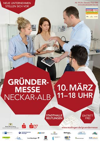 Die Gründermesse Neckar-Alb ist ein Gemeinschaftsprojekt der Wirtschaftsförderungen der Städte Albstadt, Bad Urach, Balingen, Metzingen, Mössingen, Münsingen, Pfullingen, Reutlingen, Rottenburg und Tübingen, der WFG Zollernalbkreis, der Industrie- und Handelskammer Reutlingen, der Handwerkskammer Reutlingen sowie des Startnetzes-Reutlingen.Die Veranstaltung wird gefördert durch das Ministerium für Finanzen und Wirtschaft.