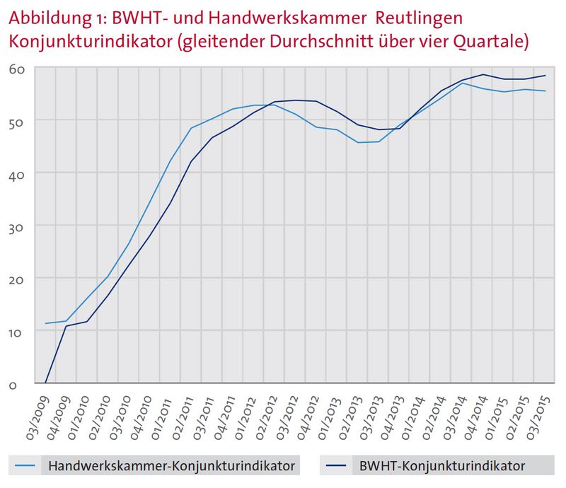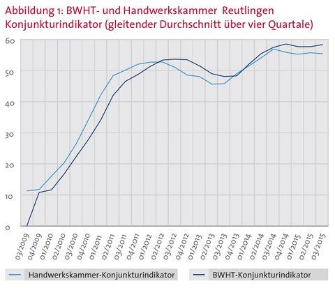 Im zurückliegenden Quartal lag die Stimmung der Betriebe auf dem Niveau des Vorjahres. Besonders positiv hat sich das Kfz-Handwerk entwickelt. Die Hälfte der Autohäuser und Werkstätten bewertete die aktuelle Geschäftslage als gut. Die Stimmung im Bau- und Ausbaugewerbe liegt nach wie vor über dem Kammerdurchschnitt, jedoch wurden die Bestmarken des Sommers 2014 nicht mehr erreicht. Der Konjunkturindikator für das gesamte regionale Handwerk erreicht mit plus 56,9 Punkten das Vorjahresniveau (plus 58,1 Punkte).